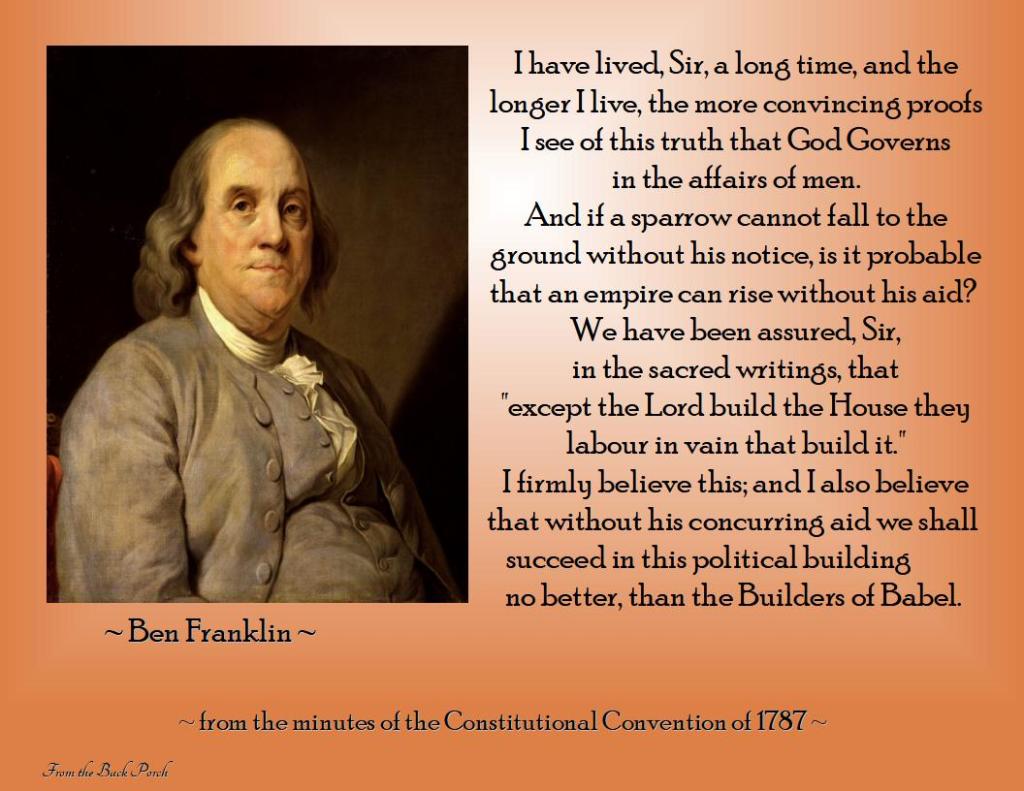 Likewise, things are heating up in our nation and we must once again listen to the words of Ben Franklin – not for the founding of the nation, but for its continuation.